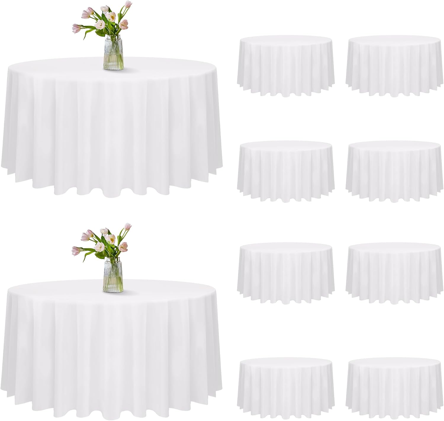 10 Pack 120 Inch Round Tablecloth, Stain and Wrinkle Resistant Polyester White Table Cloth, Washable Decorative Round Table Cover for Dining, Buffet Parties & Wedding