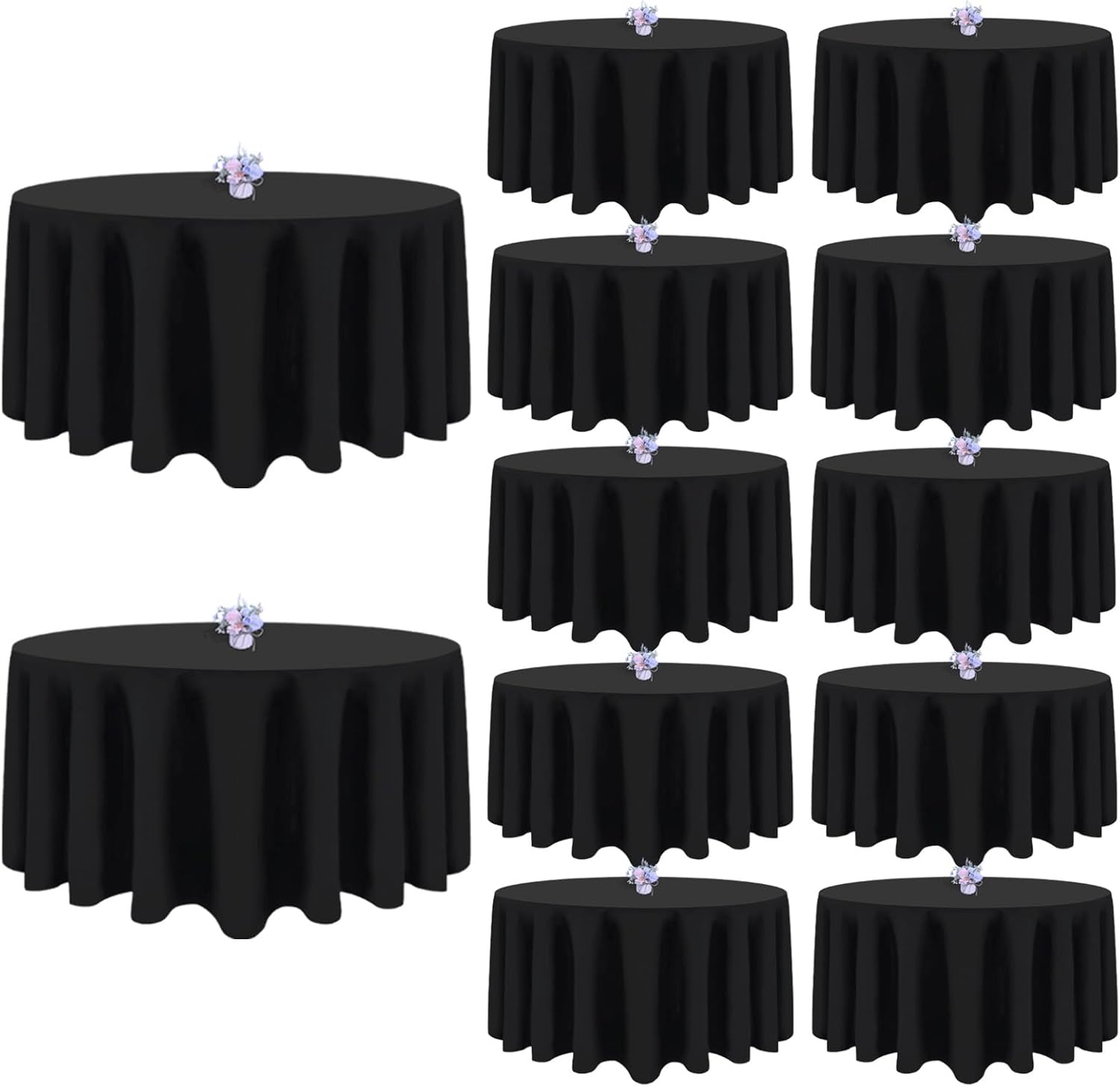 12 Pack White Round Tablecloth 120 Inch Round Table Cloth, Wrinkle Resistant and Washable Tablecloth Polyester Fabric Table Cloth Round Table Cover for Dining Wedding Banquet Party