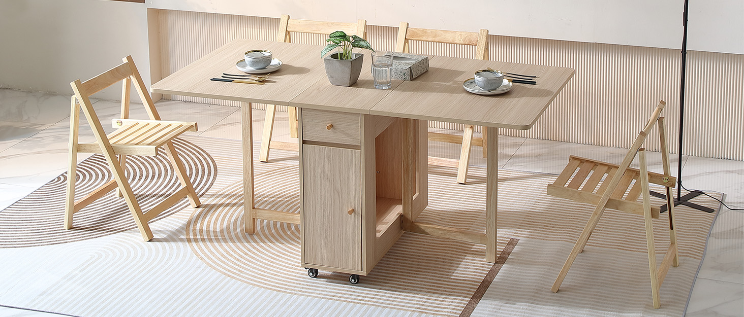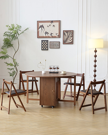 Now people like to cook at home and invite friends to get together. In order to provide customers with a space-saving dining table, our designers took more than 2 years to design this folding dining table.
