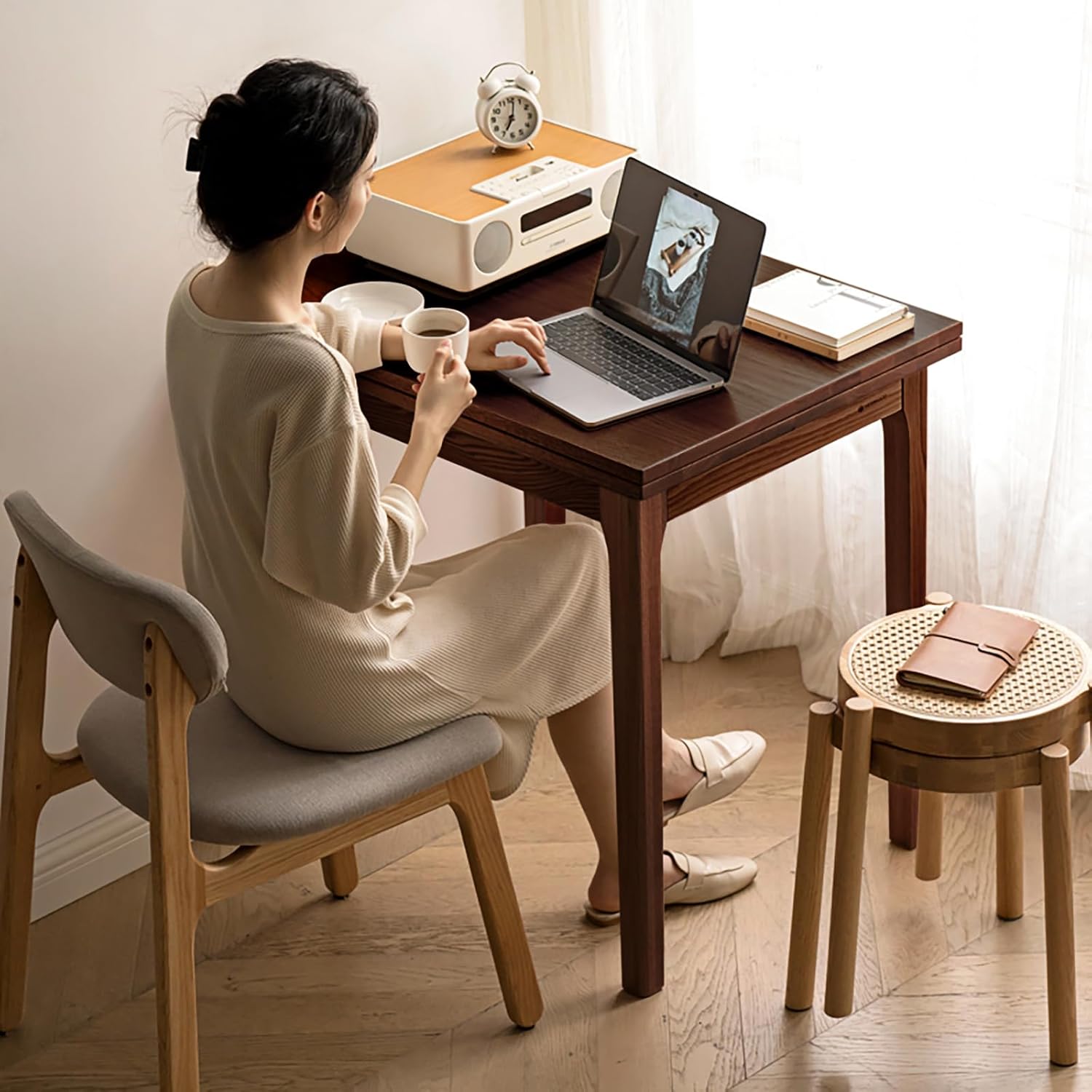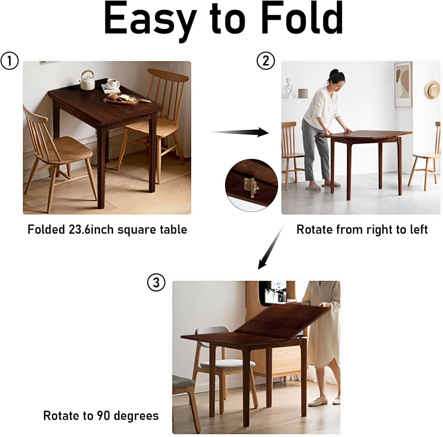 48" Folding Dining Table, Modern Solid Wood Dining Tables, Space Saving Square Desk, Dining Table for 6, Table Converts to Dining Table for Living Room, Home Office (Walnut-Colored)