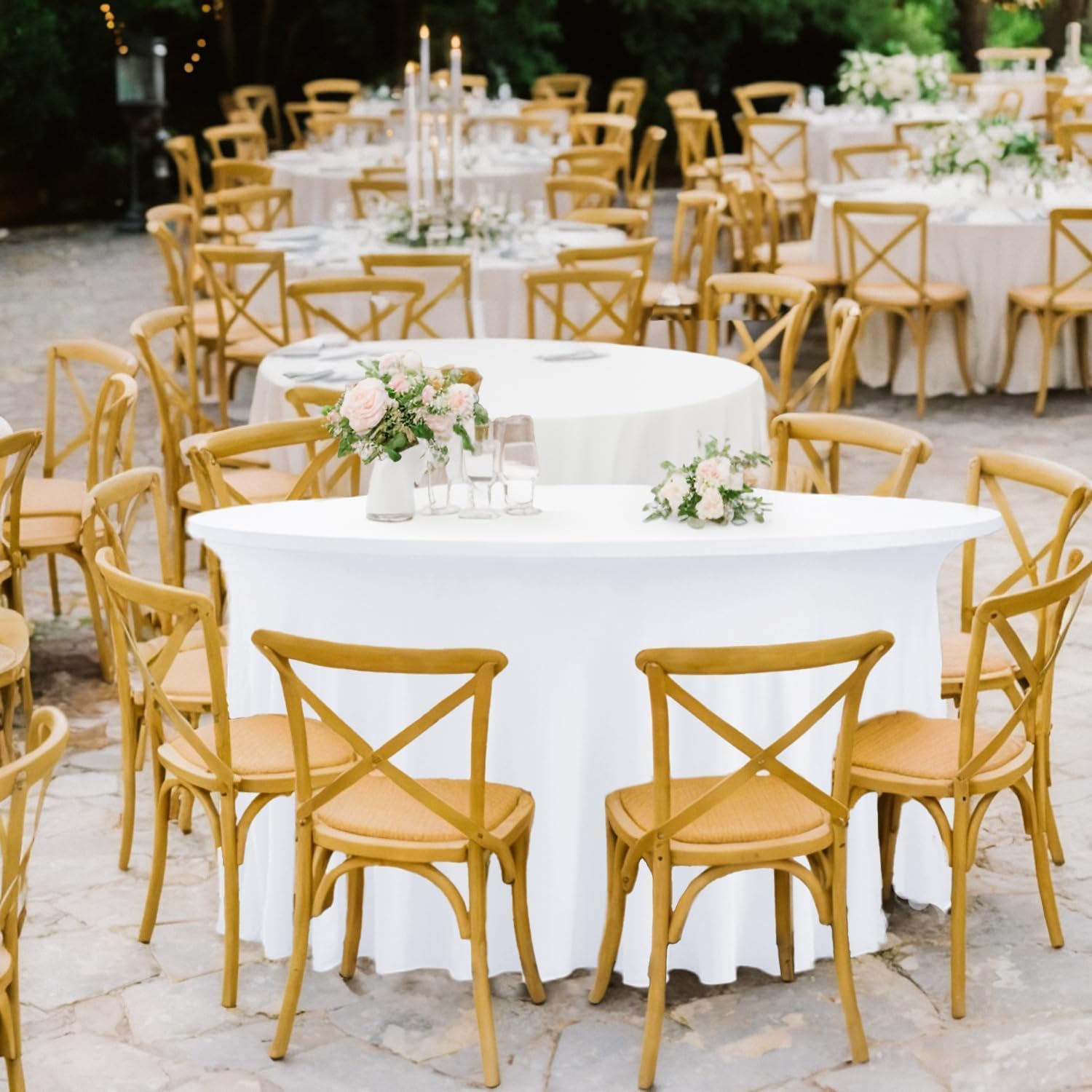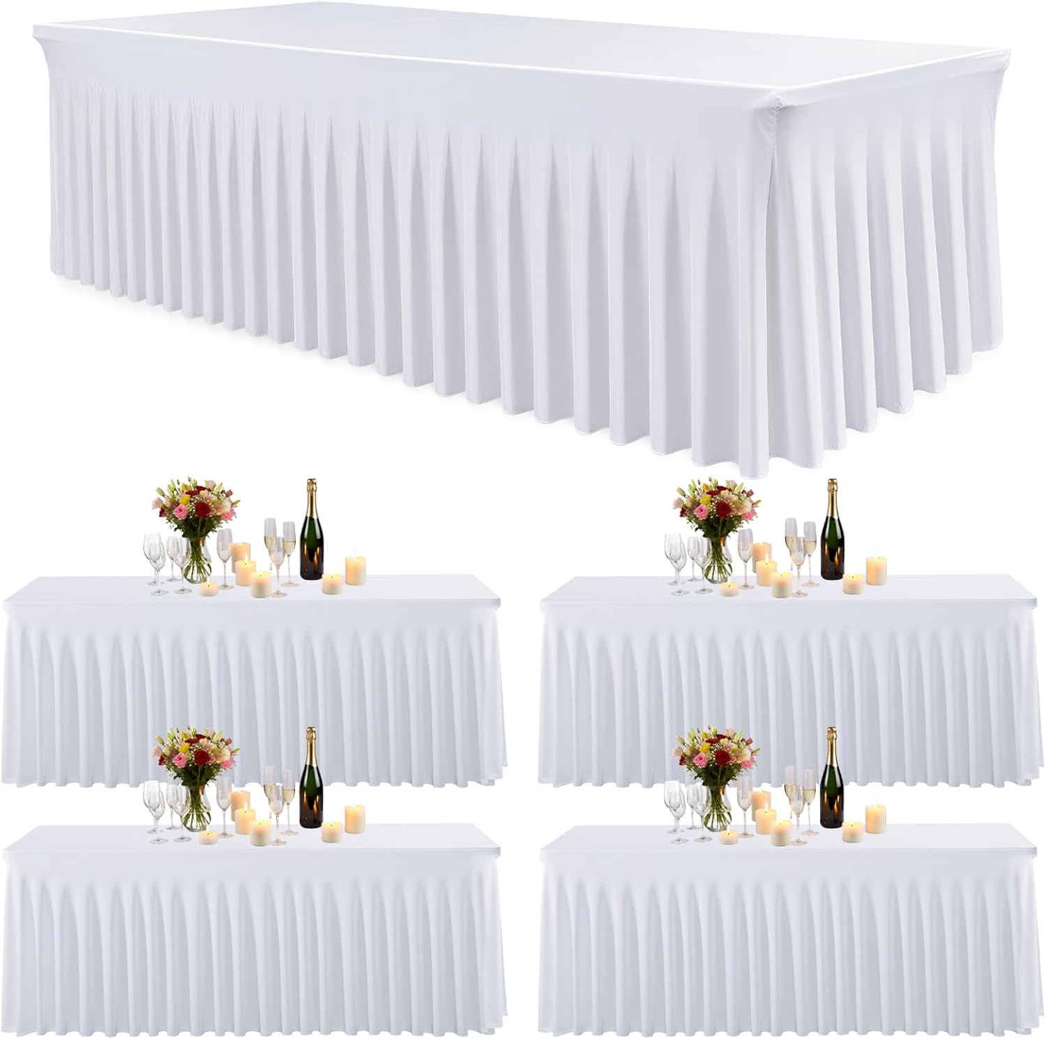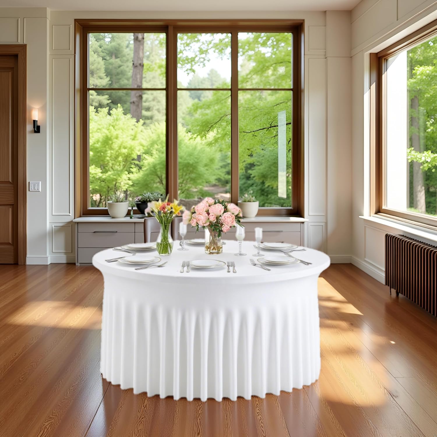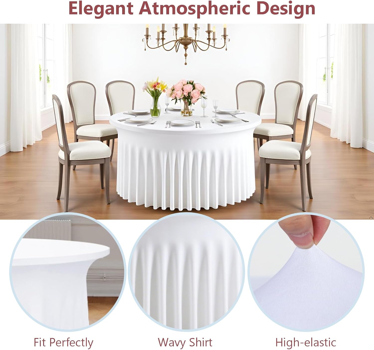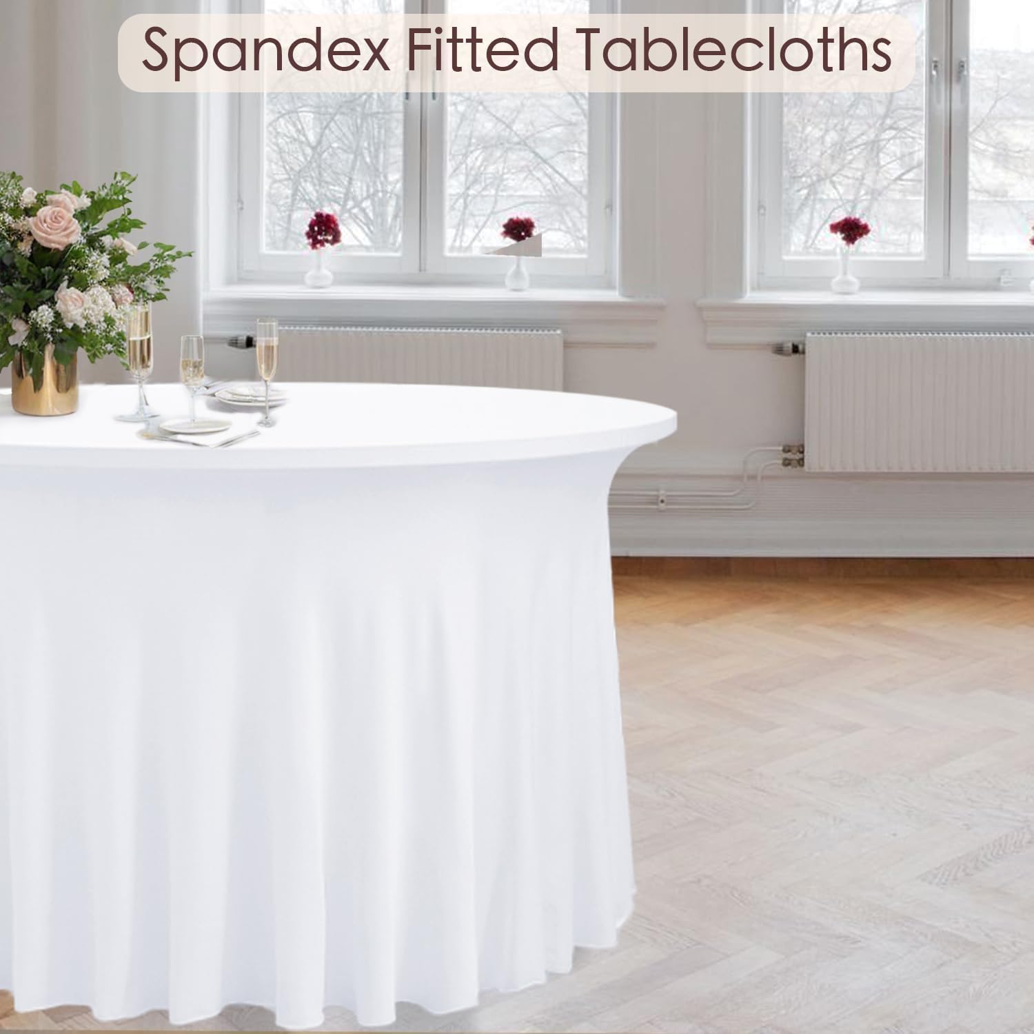 8 Pack White Round Spandex Tablecloths for 60 inch Table, 120 Inch Spandex Fitted Tablecloths, Wrinkle Free Washable Polyester Tablecloth for Wedding, Party, Birthday, Home Decoration