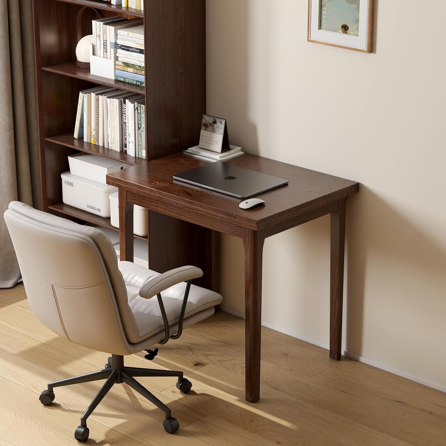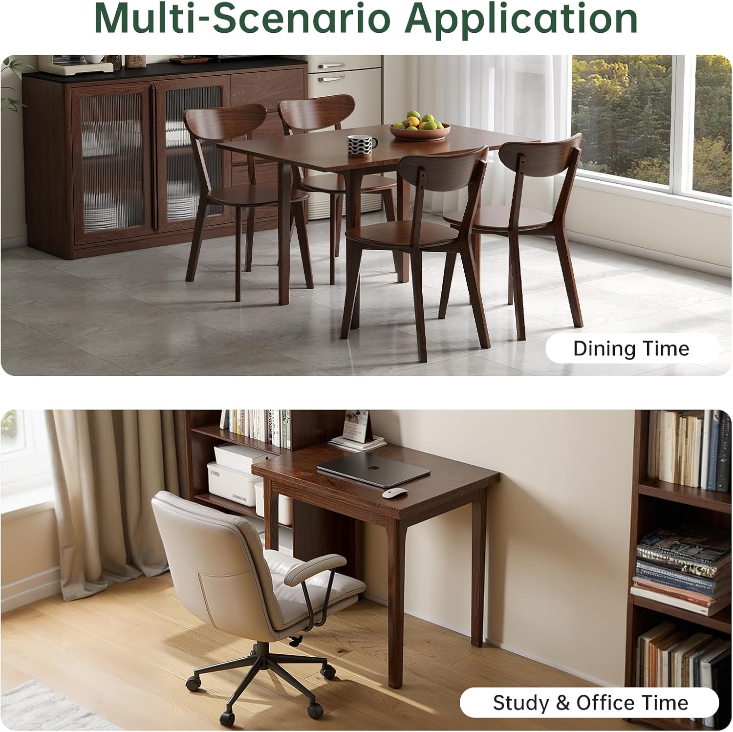 Foldable Dining Table for 4, 100% Solid Wood Folding Kitchen Table with Oak Wood Legs, Modern Dinner Table for Dining Room, Living Room, Kitchen, Small Space, Walnut