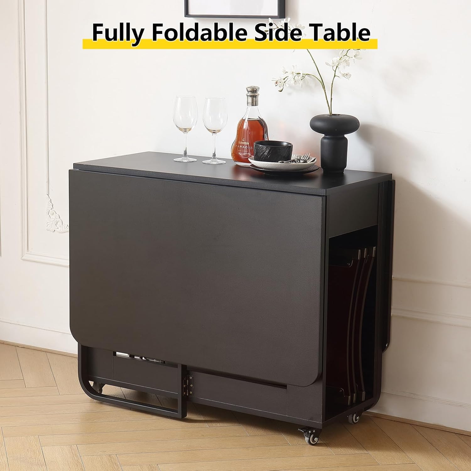 Folding Dining Room Table for 4/6 with 35.4" Extra Wide Space Saving Drop Leaf Table with Lockable Wheels & Storage, Heavy Duty Eco Solid Wood Top 300lb, Convertible Desk for Apartments/RV/Home Office