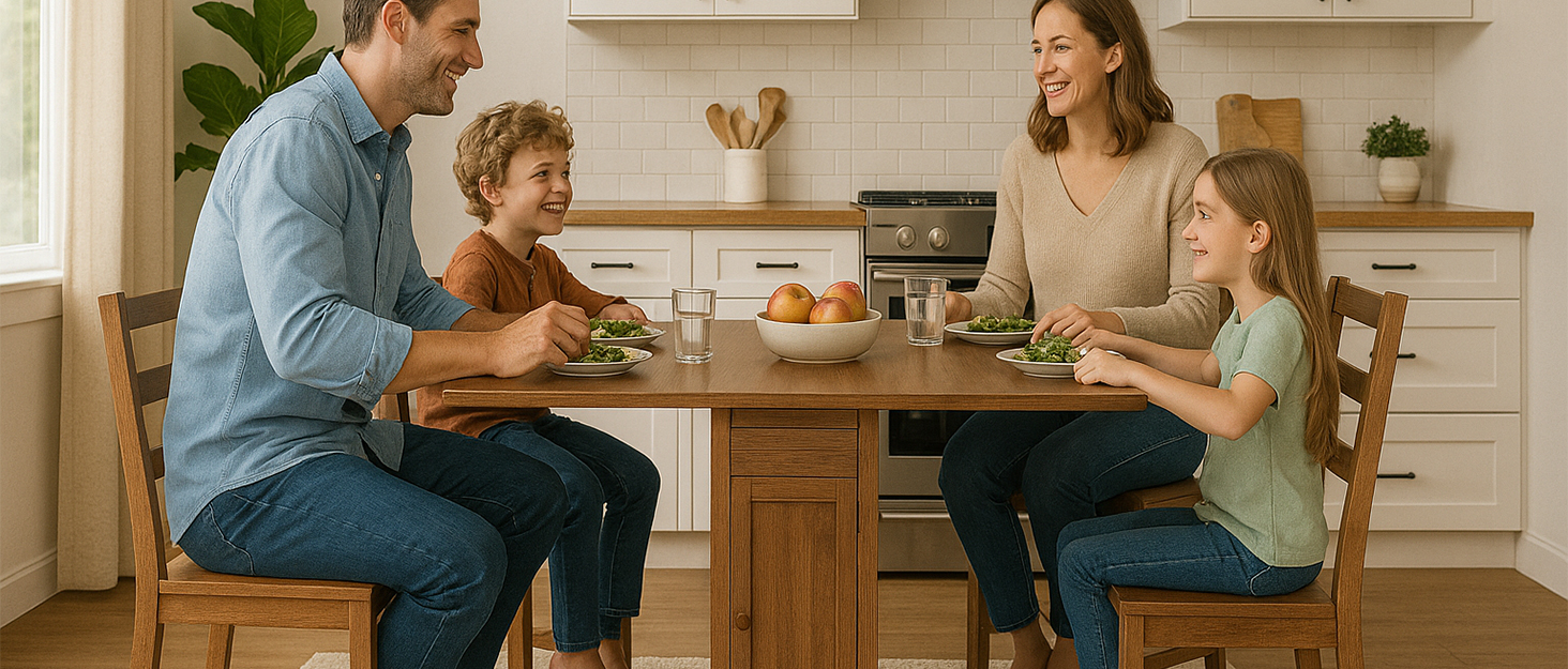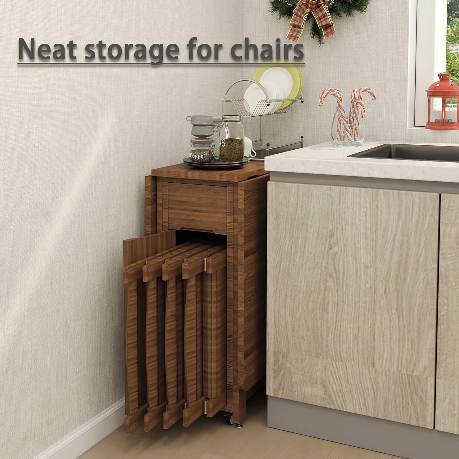 Folding Dining Table Set for 4 with Foldable Chairs, Bamboo Crafted Dining Room Furniture Sets, Drop-Leaf Design Dinette with Storage, Saver 80% Kitchen Space, No Assembly Required (Brown)