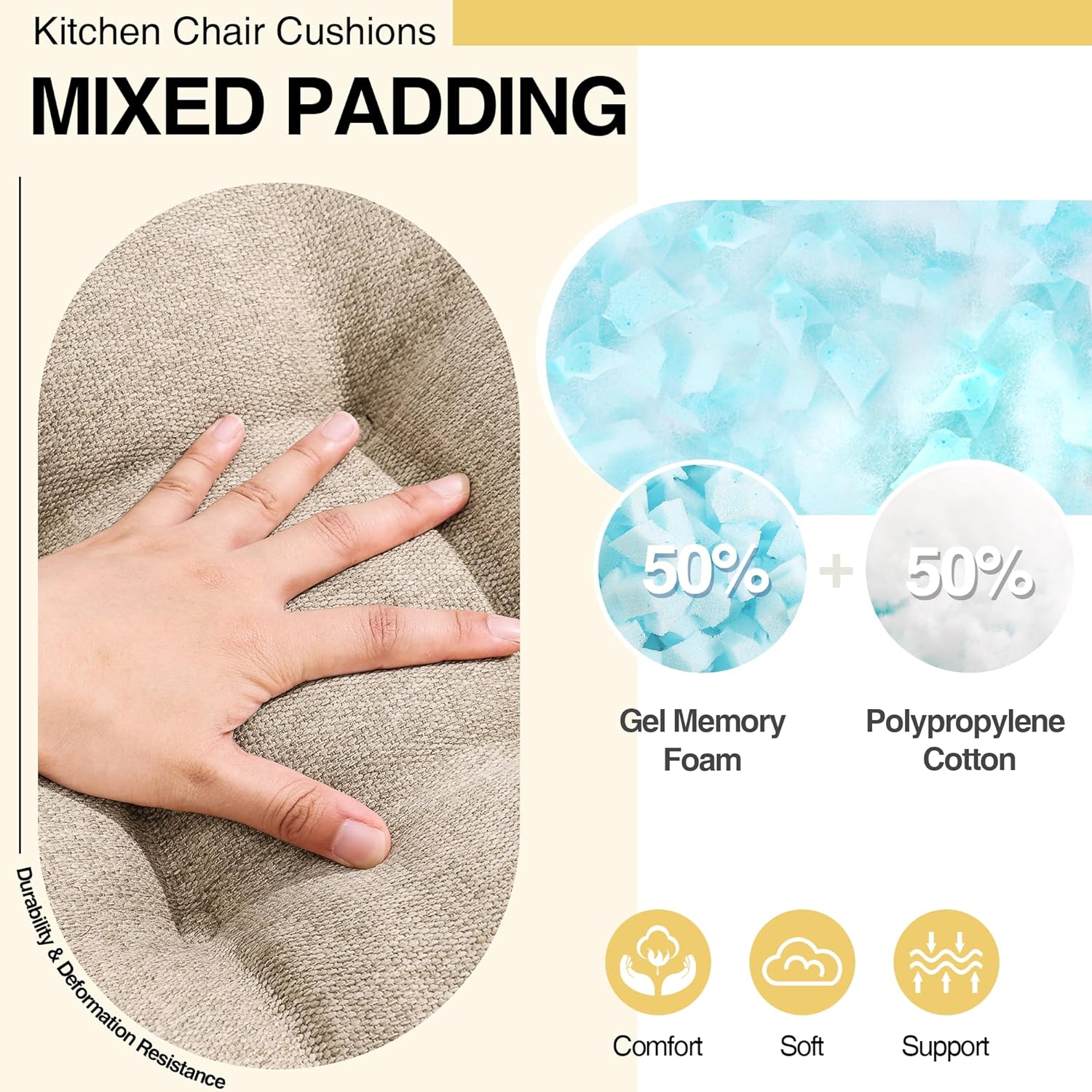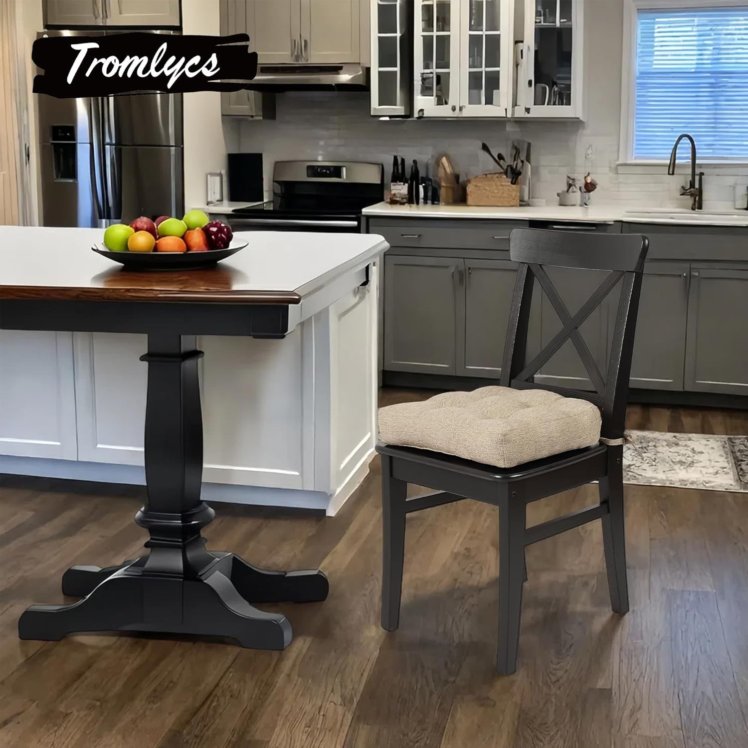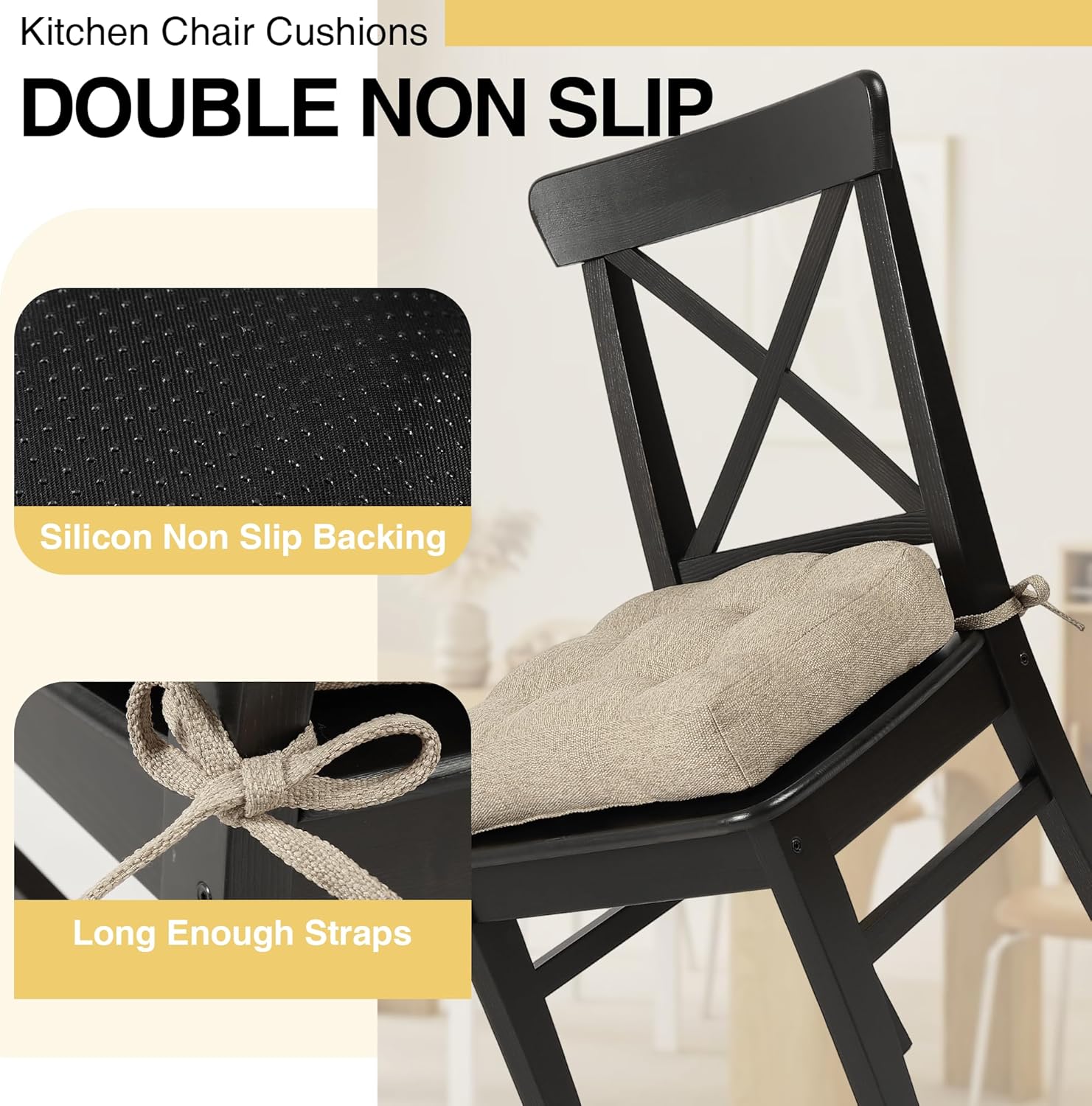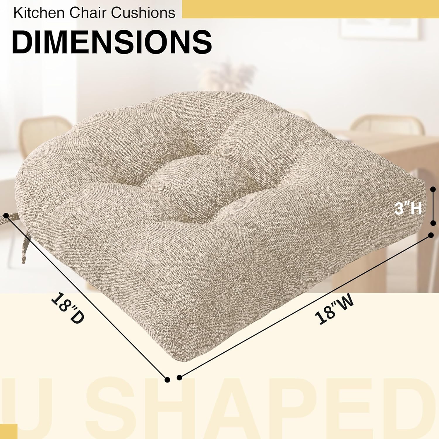 Tromlycs Chair Cushions for Dining Chairs Kitchen Seat Cushions Room Set of 4 Pads with Ties Indoor Non Slip Office 18 x 18 Inch, Beige